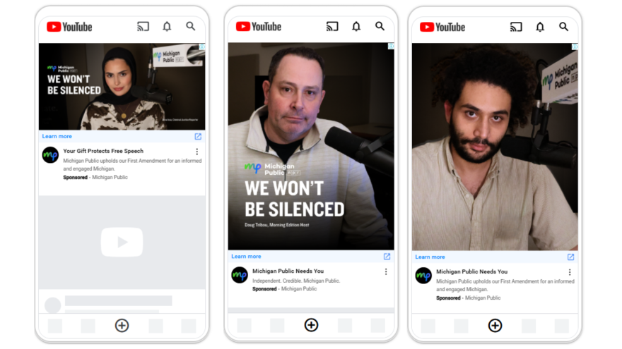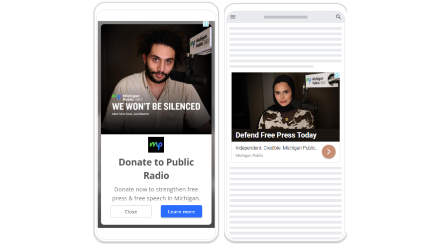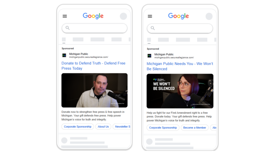 In the wake of public media’s loss of federal funding, Michigan Public ran various campaigns to ensure our members that we weren’t going anywhere, but their support was needed. For our end-of-year campaign, we knew we wanted to try something a bit different and experiment on some new-to-us platforms. We worked with our partners at the Allegiance-Pursuant Group to experiment with using a Google PMAX and Search campaign, which uses AI technology to serve on cohesive campaign across Search, YouTube, Gmail, Maps, Display and Discovery platforms on Google.