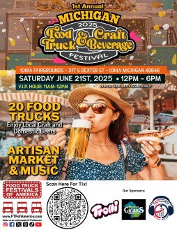 Food Truck Festivals of America is bringing the 1st Annual Michigan Food Truck & Craft Beverage Festival to Ionia Fairgrounds on Saturday, June 21st, from Noon to 6PM (VIP hour 11 AM to Noon).
