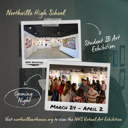 This exhibition features artwork created by 28 students enrolled in Northville High School’s International Baccalaureate (IB) Visual Art experience. In the program, students developed problem-solving skills and proficiency as artists by exploring and experimenting in a variety of contemporary practices and media. For the program’s culmination, the students install a selection of their best works in our galley, each with thoughtfully written object labels.