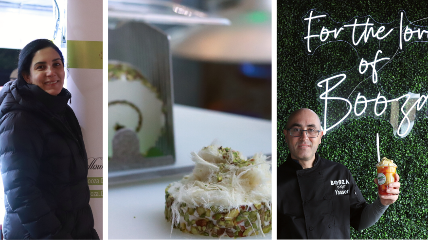 Another treat belongs to Malik Abukaff, who is bringing a piece of his Palestinian grandfather’s home to his knafa food truck, AbuK'nafa. Knafa is a sweet and savory cheese pastry dessert topped with syrup, and Abukaff's has an impressive cheese pull.