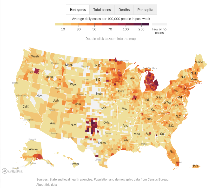 For the past few weeks, Michigan has had some of the highest rates of infection and hospitalization. Dr. Debra Furr-Holden, an epidemiologist and public health expert with Michigan State University, says Michigan’s bright red spot on a heat map of the nation has to do with a few factors: re-opening, vaccinations, and variants.