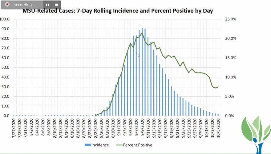 The week after that quarantine recommendation was lifted, the health department reported only 27 MSU-related COVID-19 cases, the lowest in more than a month. That’s down from a record 632 cases the week of September 7.